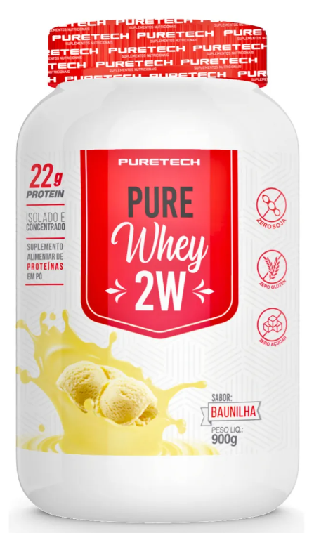 Whey Protein 2W Puretech Isolado e Concentrado Pote 900g Sabor Baunilha